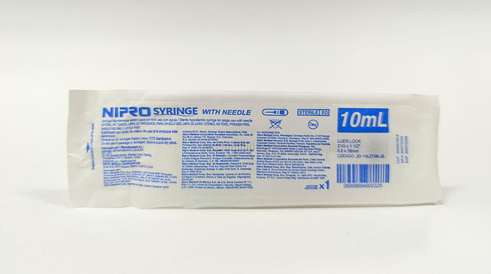 Son jeringas usadas para la administración de medicamentos.. Uno de los extremos presenta una conexión Luer Lock, equipada con una aguja hipodérmica fabricadas e inspeccionadas de acuerdo con la norma ISO 7886-1. Las jeringas incluyen tamaños de 3ml, 5ml, 10ml, 20ml, constituida por: barril, émbolo y pistón.