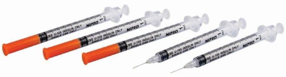 Dispositivo Médico utilizado para administrar Insulina en dosis de entre 30, 50 y 100 UI, de insulina al organismo.